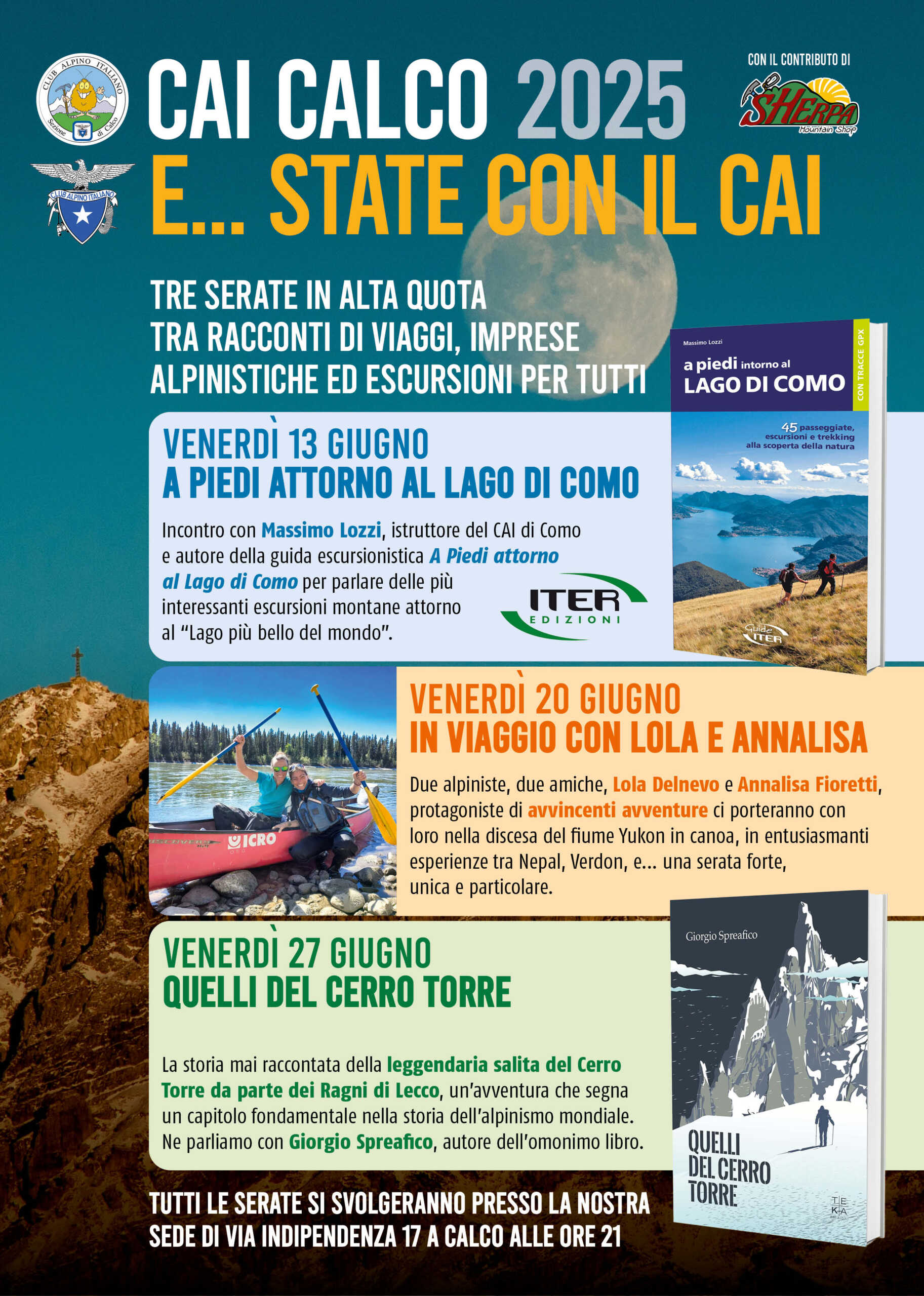CALCO – Giugno si tinge di avventura con tre serate speciali organizzate dal Cai Calco: racconti emozionanti, imprese alpinistiche leggendarie e viaggi che ispirano. Tutti gli incontri si terranno alle ore 21 presso la sede di via Indipendenza 17 a Calco.