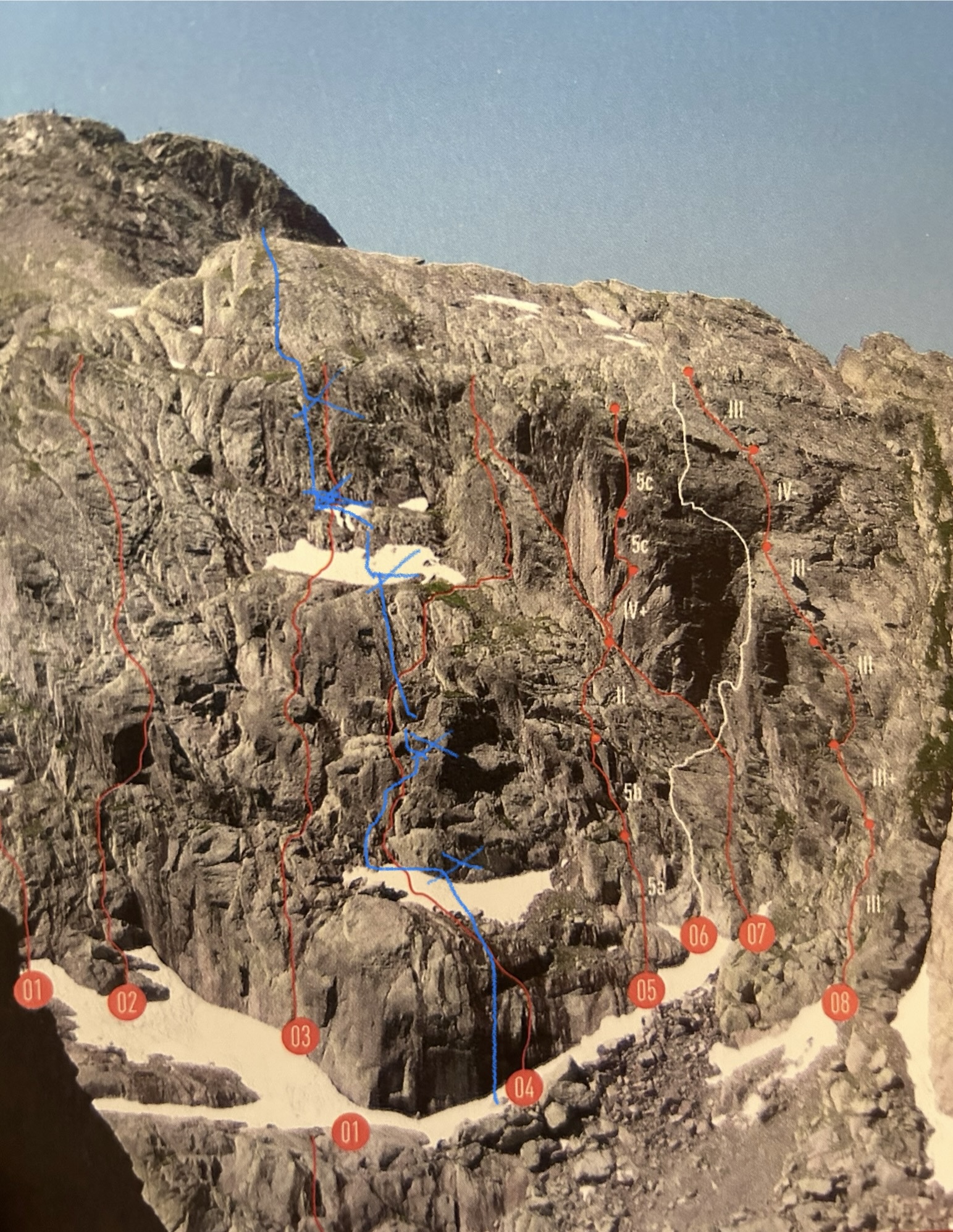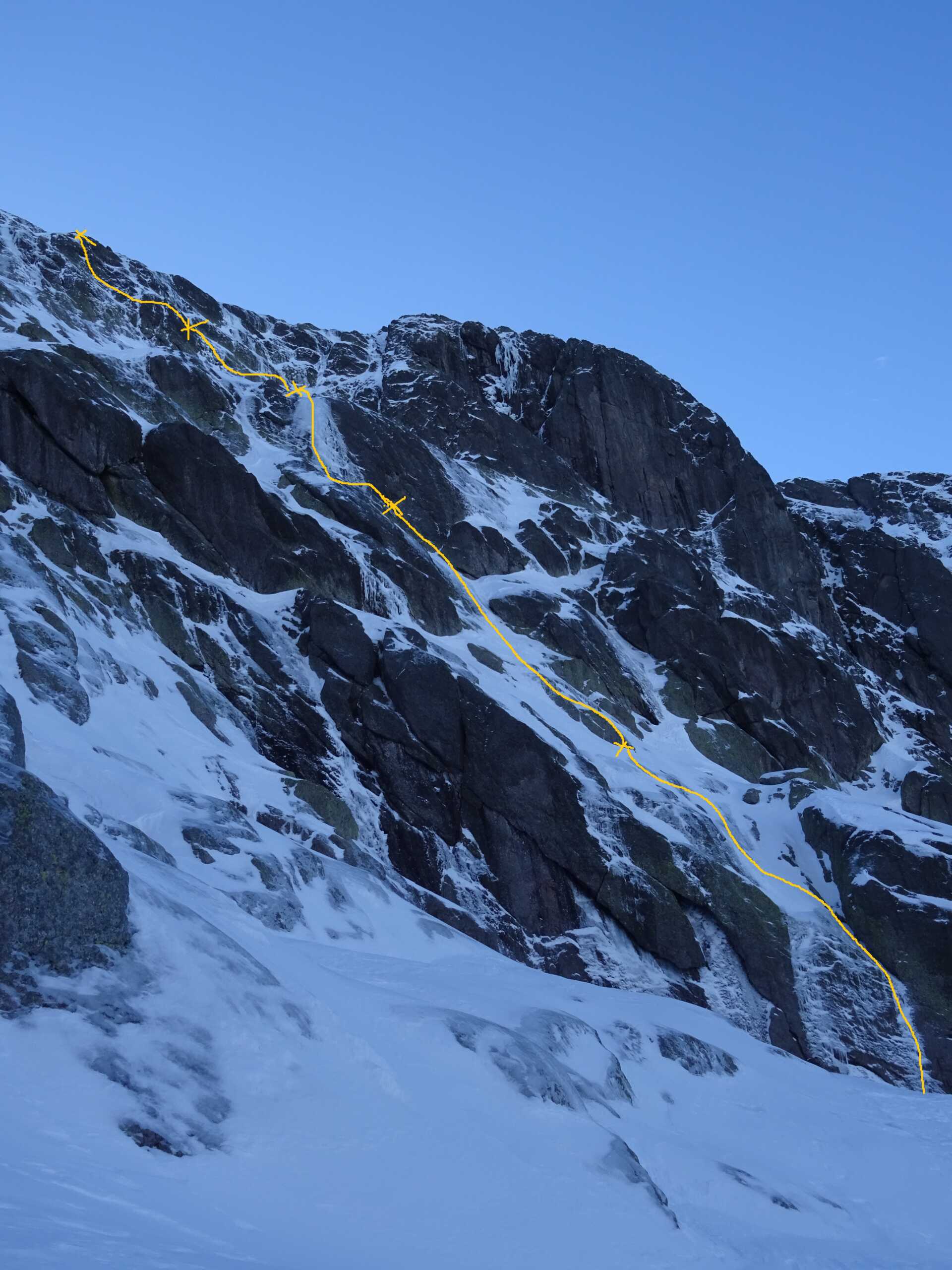 La nuova via tracciata risale la parete nord del Pizzo, circa 50 metri a sinistra della via “Anna nel sole”.
