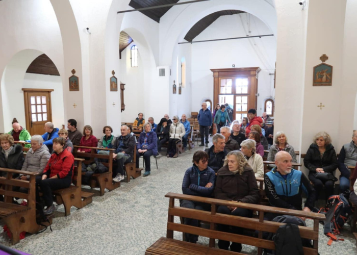 La Santa Messa, celebrata da don Aldo Milani di Abbadia Lariana, è stata preceduta da una breve camminata fino alla terrazza belvedere, dove, grazie alla giornata luminosa e mite, i partecipanti hanno potuto ammirare uno splendido panorama.