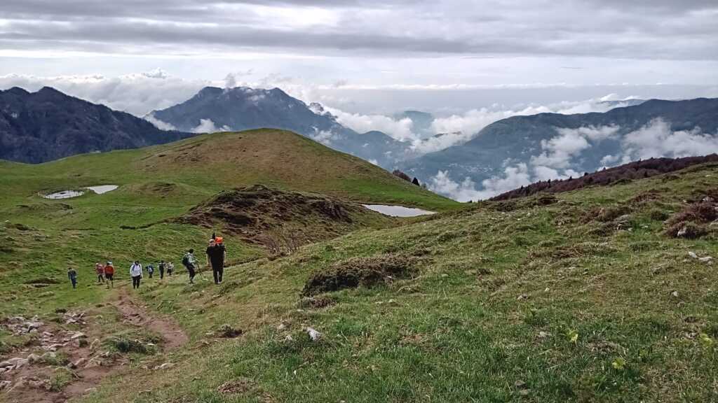 LECCO – Nonostante le avverse condizioni meteorologiche un nutrito gruppo di soci e simpatizzanti del Cai Strada Storta è partito alle 7.30 di domenica 27 aprile dal parcheggio di via Caduti di Nassyria a Lecco per dirigersi in Val Taleggio. Le quasi 40 persone si erano date come obiettivo il raggiungimento del rifugio Gherardi, situato nelle prealpi orobiche, a circa 1650 metri di quota. I partecipanti hanno raggiunto in auto, percorrendo la suggestiva strada che sale alla Culmine di San Pietro e scende giù nella valle bergamasca, il parcheggio in località Quindicina, a 1307 metri di quota, e da lì hanno proseguito a piedi.
