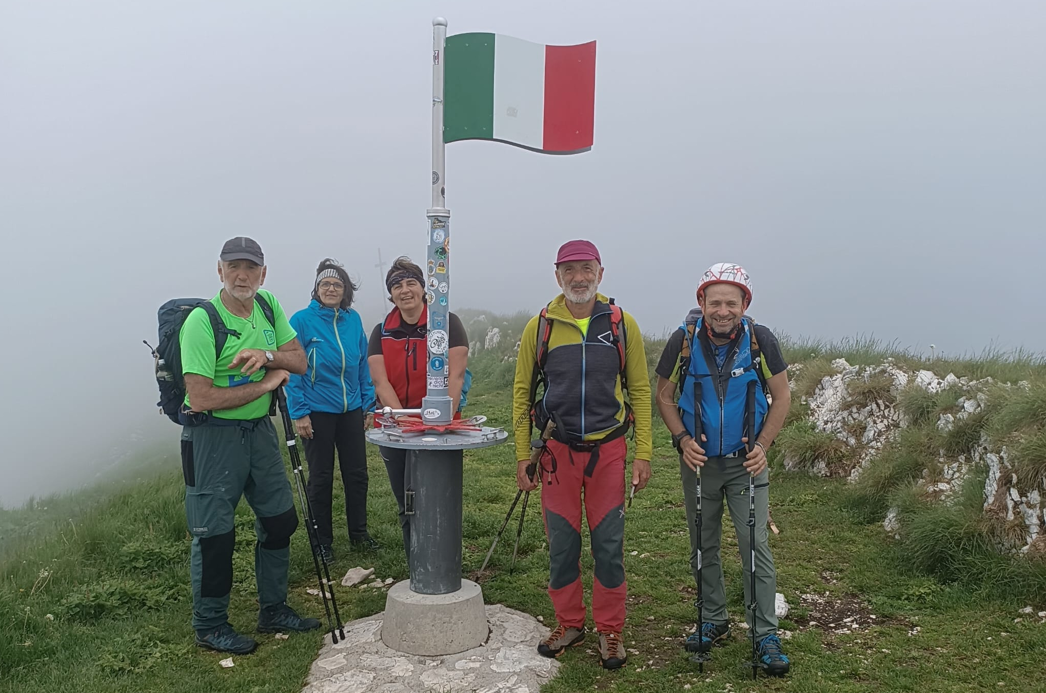 In cima al monte, il gruppo ha trovato una chiesetta alpina, eretta nel 1985 sui ruderi di una precedente costruzione risalente alla Prima guerra mondiale e il bivacco Due Aceri. Una volta lassù, dall’alto dei suoi 1581 metri di quota, non restava che fermarsi per ammirare l’incomparabile panorama, su tutto il Benaco e sulla Valle di Toscolano. Purtroppo, però, per la Strada Storta il meteo non è stato molto favorevole, per la presenza di banchi di nuvole e foschia, che solo in un paio di occasioni ha permesso di scorgere il lago sottostante e la magnifica vista del panorama circostante.