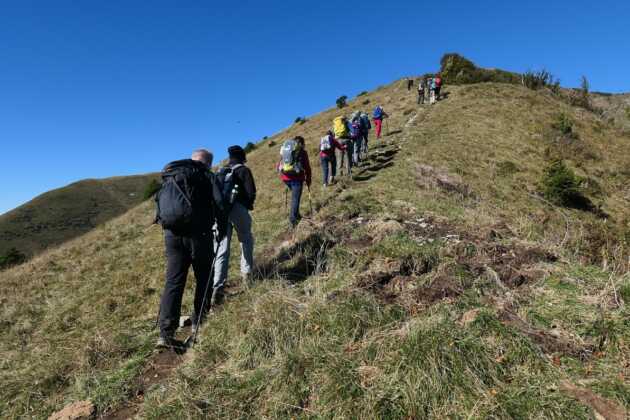 Da Quindicina (1.285 m) il gruppo è salito alla Baita Baciamorti (1.458 m) e al Passo Baciamorti (1.540 m), fino a raggiungere la vetta del Pizzo Baciamorti (2.009 m). Il rientro ha seguito un percorso panoramico con il passaggio per la Baita Cabretondo (1.869 m), la Bocchetta Regadur (1.860 m), l’ex Rifugio Cesare Battisti (1.690 m) e il Rifugio Gherardi (1.650 m).