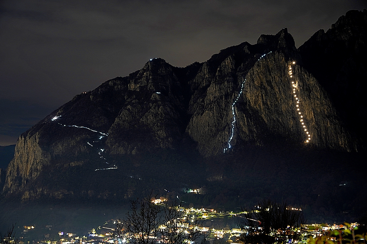 Dai pendii del San Martino alla Rovinata, dal Cornizzolo al Moregallo, le scie luminose hanno disegnato la notte regalando un colpo d’occhio suggestivo. Le immagini firmate da Giancarlo Airoldi restituiscono tutta la magia dell’evento, permettendo anche a chi non era presente – o a chi vive lontano – di cogliere l’intensità di uno spettacolo che ogni anno rinnova il legame tra comunità e montagna.