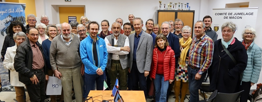 Il presidente del comitato di gemellaggio ha voluto ringraziare il comune di Mâcon per aver messo a disposizione la sala riunioni della Maison des Associations, il Club Alpin Mâconnais, Olivier Mailland il suo presidente e Nino Cicciu segretario del club che ha investito molto nell’organizzazione della conferenza e che ha accolto il relatore.Giorgio Rusconi a nome del Club Alpino Italiano di Lecco, ha donato le magliette tecniche per la montagna realizzate in occasione dei 150 anni di fondazione del Club di Lecco e che coincide con i 150 anni di fondazione e del Club Alpino Francese.