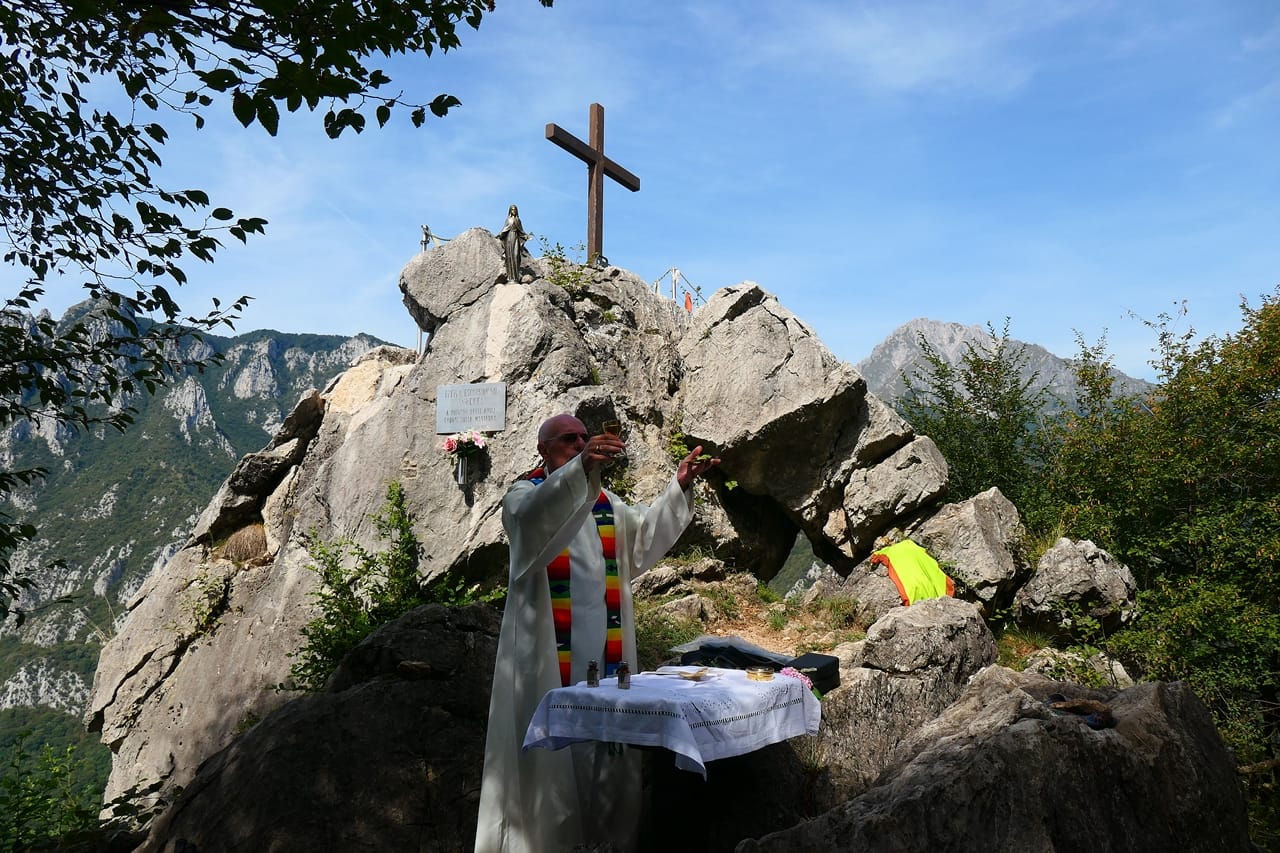 Tradizione rispettata anche questa mattina, quando due comitive, una partita da Malavedo per un giro più lungo e una partita da Ballabio, hanno raggiunto la vetta del Sass Quader (886 m) dove don Marco Tenderini ha celebrato la messa.