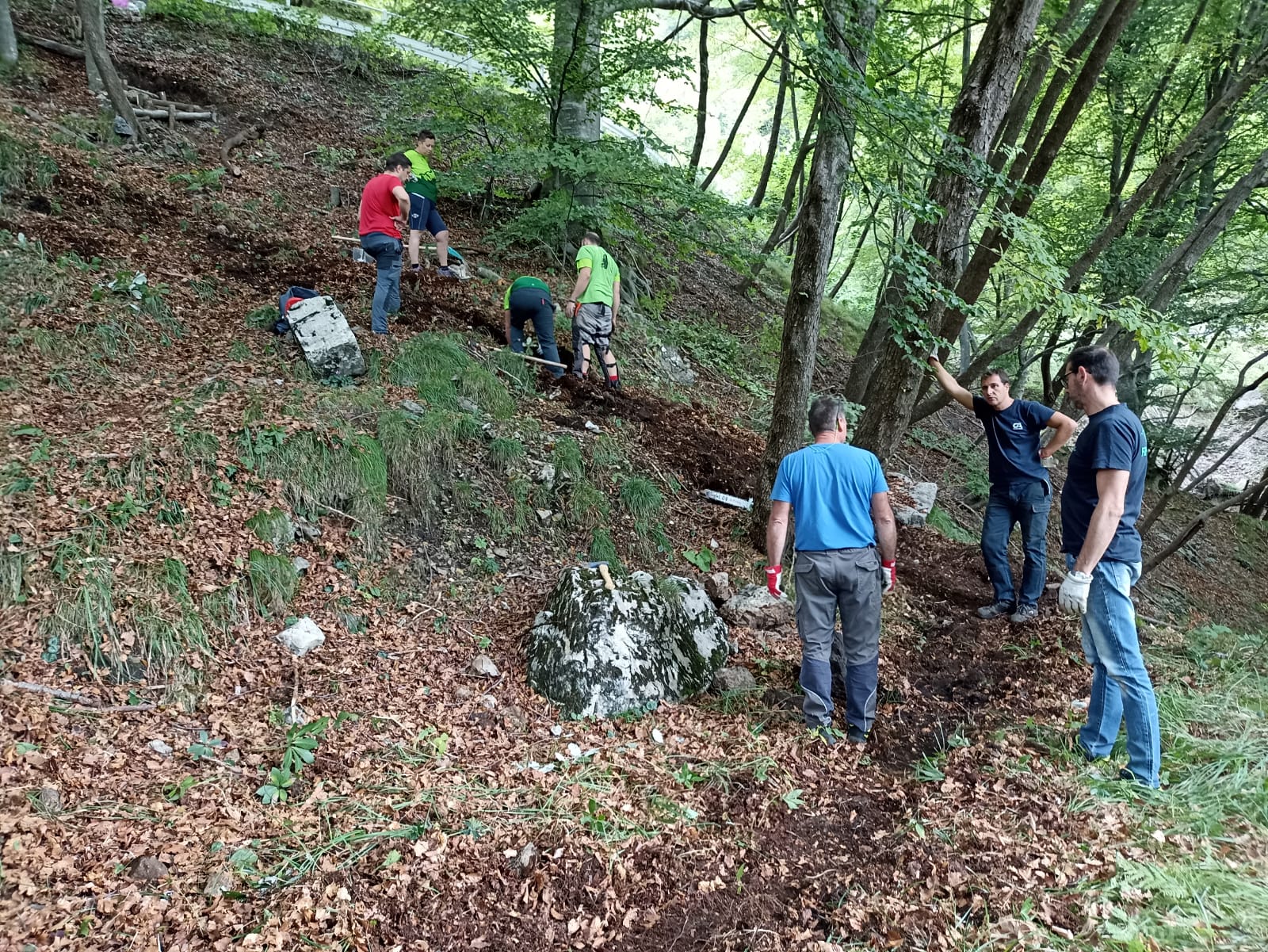 Durante l’intervento, i volontari si sono impegnati anche nella costruzione di canaline per lo scolo dell’acqua, nella posa di gradini e nell’installazione della segnaletica verticale e orizzontale, un lavoro fondamentale per la sicurezza e la fruibilità del sentiero. Al pomeriggio, il gruppo ha eseguito ulteriori lavori di manutenzione sul primo tratto del sentiero che porta alla Bocchetta di Desio, tagliando la vegetazione e rinforzando con un muro di sostegno un tratto soggetto a frane.