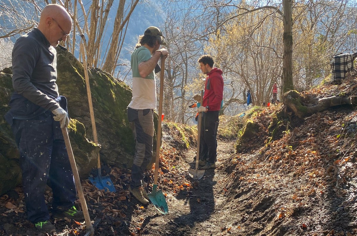Un lavoro di squadra importante che va a beneficio di tutti gli amanti della montagna e che ci ricorda che ognuno di noi può dare il proprio contributo: “Oltre a questa grossa manutenzione abbiamo fatto altri piccoli lavori. In particolare, sempre lungo lo stesso sentiero, abbiamo ripulito un tratto che in occasione di piogge diventava particolarmente fangoso. Sotto una trentina di centimetri di foglie e palta abbiamo ritrovato il vecchio acciottolato e l’abbiamo riportato alla luce. Infine è stato fatto qualche intervento sul sentiero verso Erna con la sistemazione di alcuni gradini”.