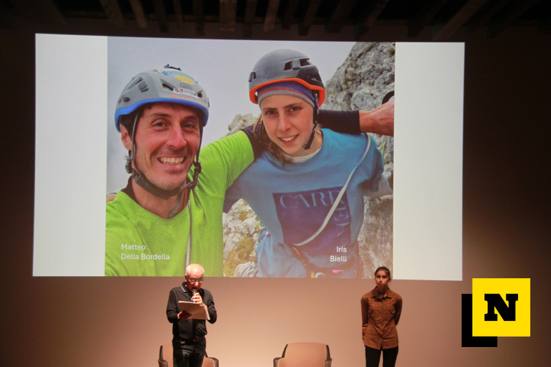 “Un talento giovanile capace di affrontare vie lunghe con consapevolezza e tenacia” ha evidenziato Codara, rimarcando il livello di difficoltà raggiunto in falesia con un 8c (“che io ho visto solo in condotta a scuola”). “Per Iris scalare non è solo uno sport ma uno stile di vita” ha poi aggiunto, anticipando la filosofia di vita poi messa in mostra dalla stessa Bielli nella chiacchierata seguita alla visione del docufilm, realizzato da Matteo Maggi e Cristiana Pecci, in cui è stata ricostruita la vicenda dell’apertura di una nuova via sulla parete sud della Marmolada da parte degli alpinisti Matteo della Bordella, Maurizio Giordani, Massimo Faletti e, appunto, Iris Bielli.