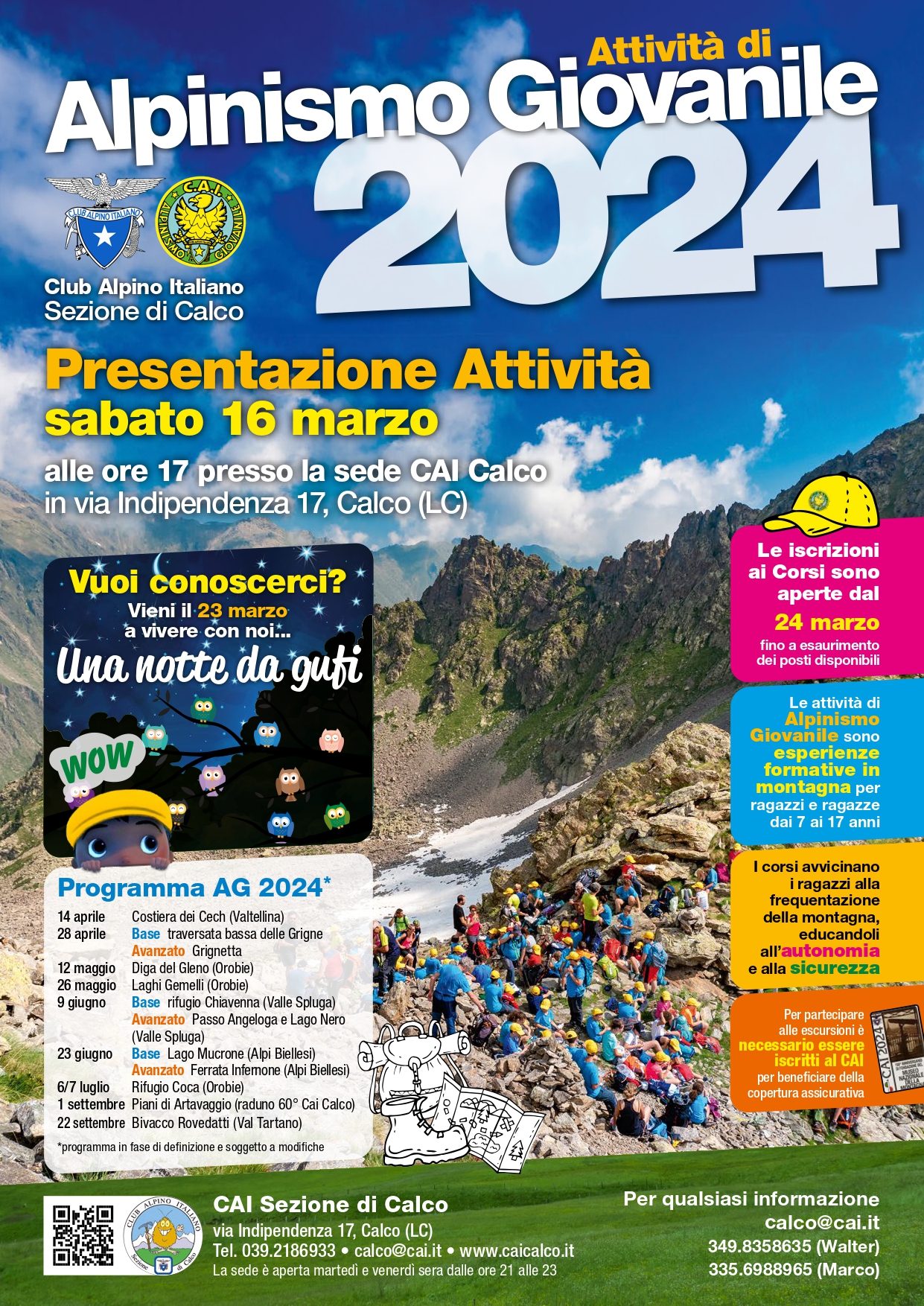 CALCO – Anche per il 2024 la sezione del Cai di Calco organizzerà l’attività di Alpinismo Giovanile per i più piccoli.