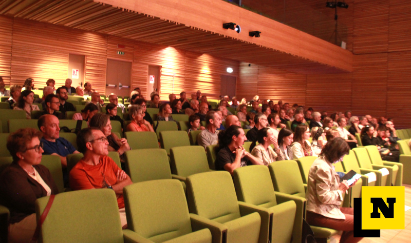 Tante persone in Auditorium per la proiezione del docufilm Marmolada – Madre Roccia con protagonista la giovane promessa dell’alpinismo Iris Bielli