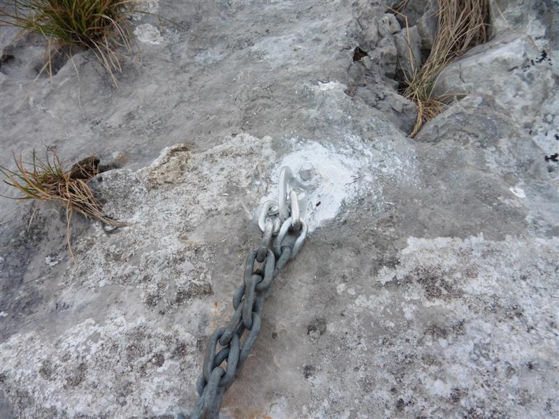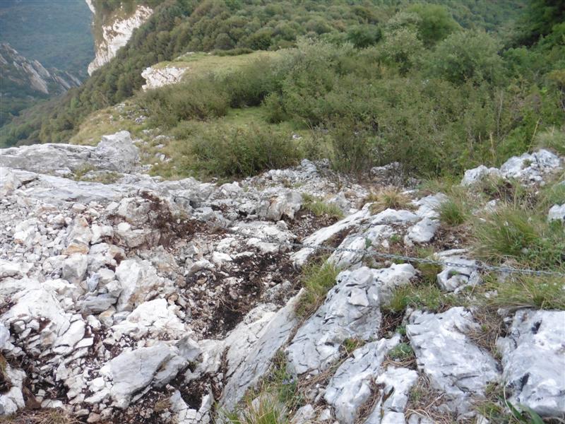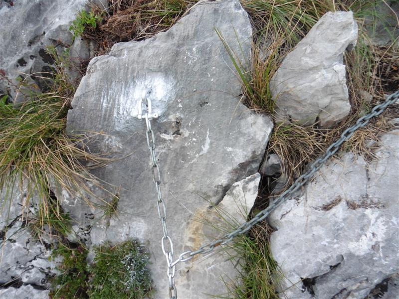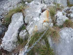 “In pratica – prosegue Morandini – il nuovo tratto si svolge su roccia più solida e con un brevissimo traverso, creato ad hoc, si ricongiunge con il vecchio percorso. La variante è indicata con una grossa freccia rossa. Resta comunque parecchio materiale mobile, pietre e sfasciumi, sopra al traverso, dunque occorre attenzione. Del resto tutto il versante Est del Corno Centrale è caratterizzato da un terreno friabile”.