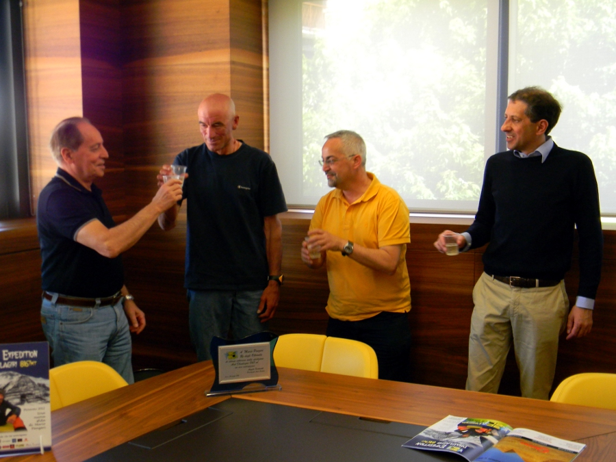 “Per prima cosa – ha proseguito Panzeri – devo ringraziare Acel Service perchè per la prima volta in questi 20 anni di spedizioni sono riuscito a partire spesato… non era mai successo”, Mario sogghigna, poi riprende… “Ma devo ringraziare anche mia moglie Paola, alla quale dedico la mia impresa e a tutti coloro che mi sono stati vicini e che in un modo o nell’altro mi hanno sostenuto”… Poi si ferma, alza gli occhi al cielo e aggiunge: “Questa impresa la volgio dedicare anche agli amici scomparsi, quelli che ora sono ben oltre gli Ottimila, credo che se in tutti questi anni non mi è mai successo nulla, un aiuto da lassù l’ho sicuramente avuto”.