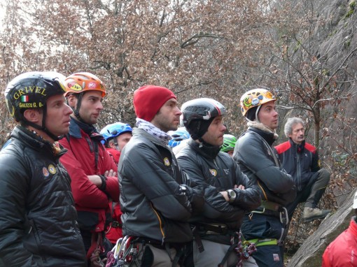 Ora sono in grado di affrontare interventi in valanga, in parete, ghiaccio e misto, nella ricerca di persone disperse e nel trasporto di barelle su tutti i tipi di terreno, in particolare in ambiente ostile. L’operatore di soccorso alpino rappresenta il primo livello di formazione: ogni anno gli aspiranti volontari, ritenuti idonei, possono partecipare a una preselezione, in cui devono dimostrare di essere in grado di muoversi in sicurezza su roccia, neve e ghiaccio. Segue la parte formativa, composta da diversi moduli, che comprendono l’arrampicata, l’allestimento e la discesa da una parete in corda doppia, la movimentazione con sci d’alpinismo, la conoscenza dei diversi tipi di ancoraggio, l’uso di apparecchi radio e artva, i principi del primo soccorso e molto altro. La qualifica OSA, obbligatoria, consente di accedere alla formazione facoltativa come tecnico di soccorso alpino (TESA), che esegue operazioni di soccorso che richiedono una competenza elevata, oppure come tecnico di elisoccorso (TE), sempre presente a bordo dell’eliambulanza quando gli interventi avvengono in ambiente impervio. Entrambi i tecnici possono assumere il compito di responsabili delle operazioni. Presenti all’esame finale Elia Ranza e Renato Ronzoni, delegato ed ex delegato della VI Orobica.