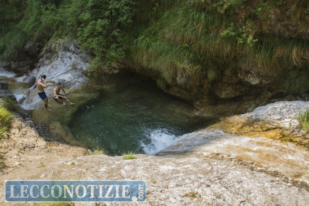 Il torrente scende verso valle in un tripudio di cascate e pozze d’acqua ad intervallare il suo percorso e sono proprio queste ultime, vere piscine naturali, une delle attrattive per i frequentatori dell’itinerario. Vi si incontrano giovani e famiglie, adulti e bambini che qui trovano un’alternativa alle più affollate rive del lago.