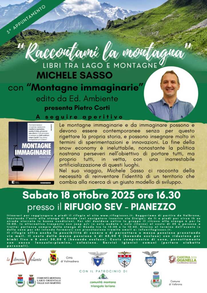 Sabato 18 ottobre incontro con lo scrittore Michele Sasso al rifugio SEV di Pianezzo