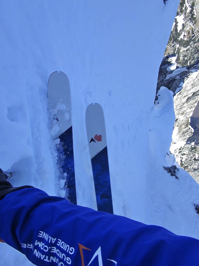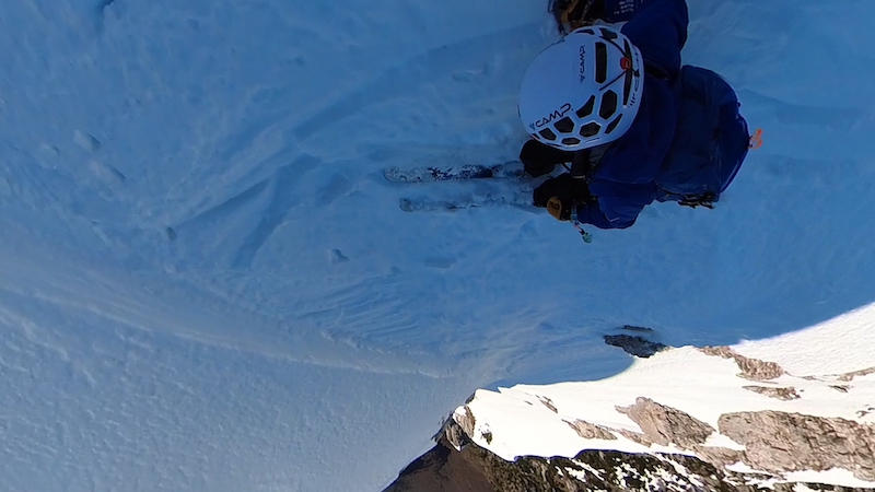 Un lavoro minuzioso che Andrea fa cercando di dare il meno possibile nell’occhio: “Ho chiesto agli amici di non pubblicare le foto delle nostre salite su internet sperando che nessuno si decidesse a scalare per primo nella stagione la via. Sciare una linea come questa, a forma di colatoio, porta inevitabilmente al distacco di valanghe e l’idea che qualcuno salisse mentre io scendevo non mi piaceva nemmeno un po’”.