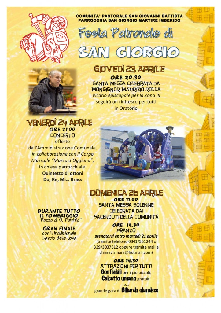 OGGIONO – Festa patronale di San Giorgio, in programma dal 23 al 26 aprile presso la parrocchia di Imberido (Oggiono).