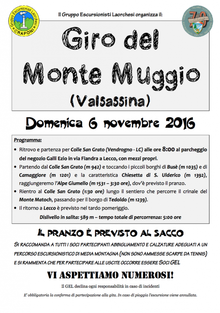 LECCO – Ultimo appuntamento dell’anno con le gite domenicali del gruppo Gel Laorca: domenica 9 novembre escursione al Monte Muggio.