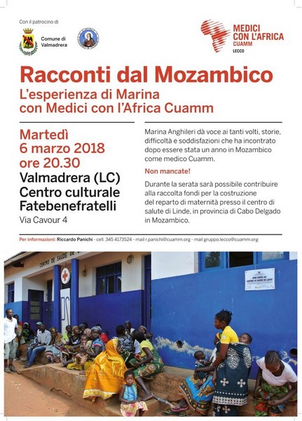 Notizie brevi Racconti dal Mozambico. Il 6 marzo l’incontro a Valmadrera Di Desirée Spreafico - 25/02/2018 Facebook Twitter WhatsApp Linkedin Email Telegram Tempo di lettura: < 1 minuti VALMADRERA – È in programma per martedì 6 marzo, alle 20.30 presso il centro culturale di Valmadrera la serata ‘Racconti dal Mozambico’, in cui interverrà Marina Anghileri, medico Cuamm che ha trascorso un anno nel Paese africano.