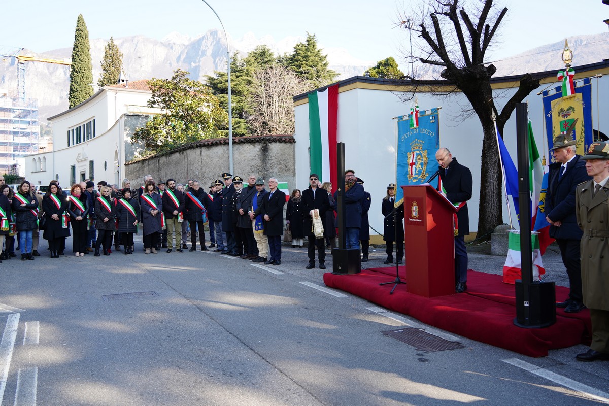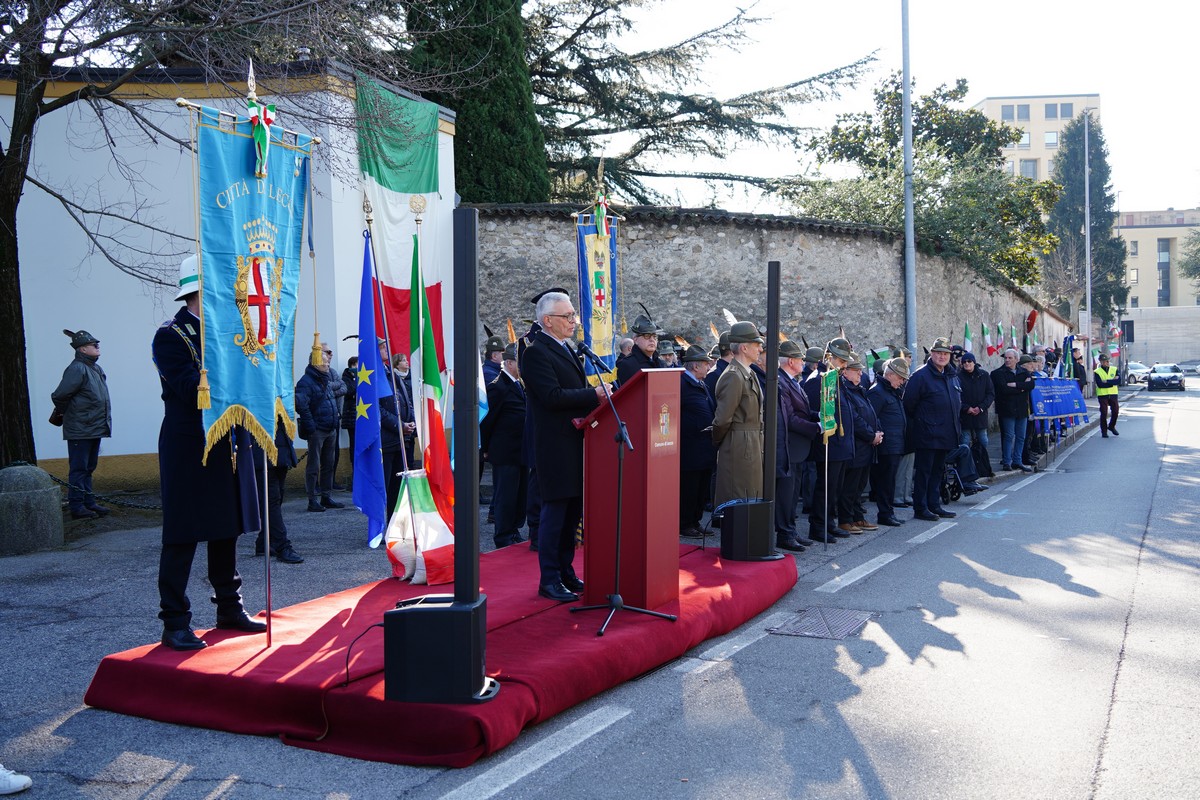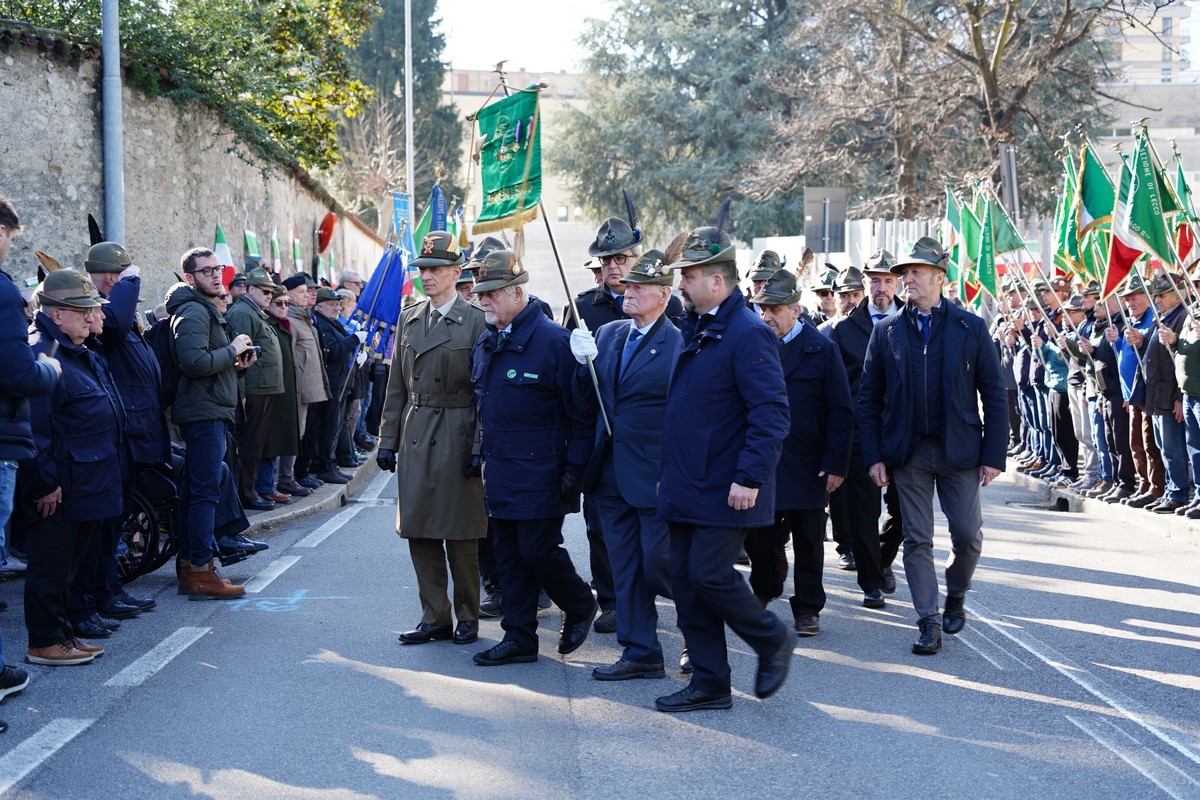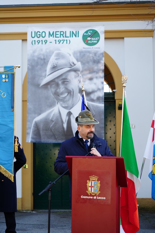 Presenti anche il presidente nazionale Sebastiano Favero, la Fanfara dei Bersaglieri di Asso, le autorità civili, militari e religiose della città, i rappresentanti delle associazioni e diversi cittadini, per commemorare un uomo, Ugo Merlini, che è stato in grado di distinguersi per il suo alto valore militare e civile e che ha incarnato la figura e lo spirito alpino della volontà di rinascita dell’Italia devastata dalla seconda Guerra Mondiale. Alla cerimonia di intitolazione sono intervenuti anche i famigliari di Ugo Merlini, il fratello Marco e la figlia Luisa.