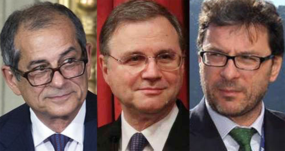 Il Ministro Tria, il governatore di Banca Italia, Ignazio Visco e il sottosegretario Giancarlo Giorgetti, ospiti del convegno di Varenna