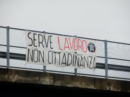 LECCO – “Serve lavoro, non cittadinanza”. Questo è il messaggio che Casapound ha affidato ad uno striscione appeso lungo la Statale 36. Un nuovo blitz del movimento di estrema destra che già a fine agosto aveva esposto uno striscione pro- Assad sull’Adda, tra il ponte Kennedy e il ponte Vecchio .