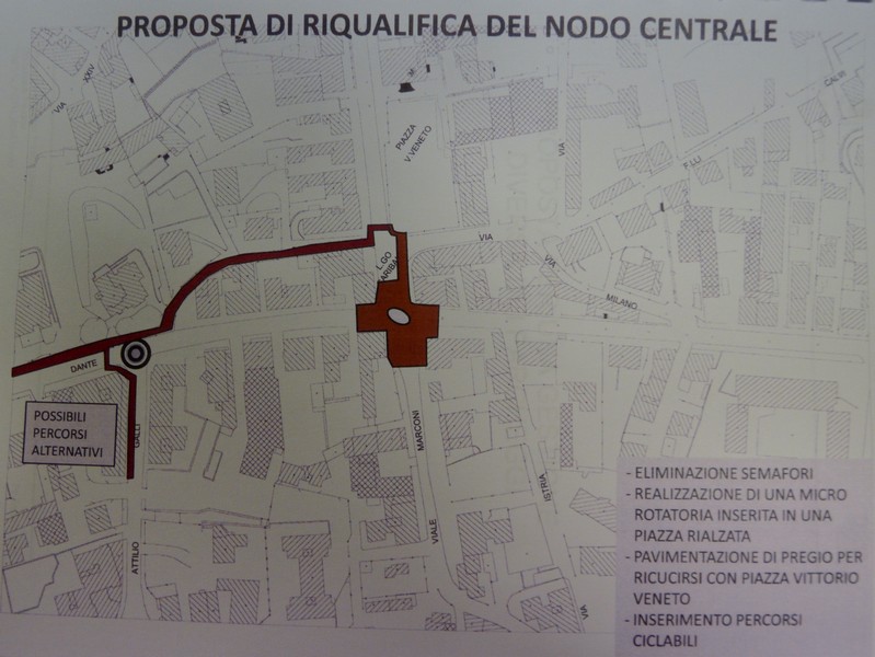 “Infine – conclude Federici – la proposta per il nodo centrale Largo Garibaldi – Corso Europa – Via Marconi  prevede una rotonda, che va a sostituire i quattro semafori”.  “Tuttavia – ha aggiunto il consigliere di minoranza del gruppo ‘Lavoro, sviluppo e libertà’ Dario Gandolfi – dovrà essere a raso, per non creare problemi a coloro che escono dai pressi del bar centrale o dalle abitazioni limitrofe all’incrocio”.