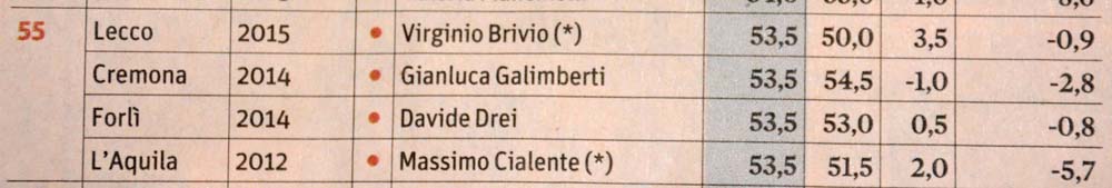 Brivio si è classificato al 55esimo su 100, facendo un balzo di oltre 20 posizioni rispetto alla stessa classifica del 2015, quando al primo cittadino lecchese era stato assegnato il 76° posto. Una scalata accompagnata da un incremento percentuale del gradimento da parte dei lecchesi che dal 50% dello scorso anno è cresciuto di 3 punti percentuali ma avrebbe perso quasi un punto rispetto al consenso rilevato nel 2015 al momento della sua rielezione a Palazzo Bovara per il secondo mandato.
