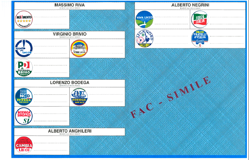 Quella pubblicata sopra è un fac-simile della scheda elettorale che dovranno compilare al seggio, sulla quale ci sono liste e candidati in corsa per il governo del capoluogo manzoniano.