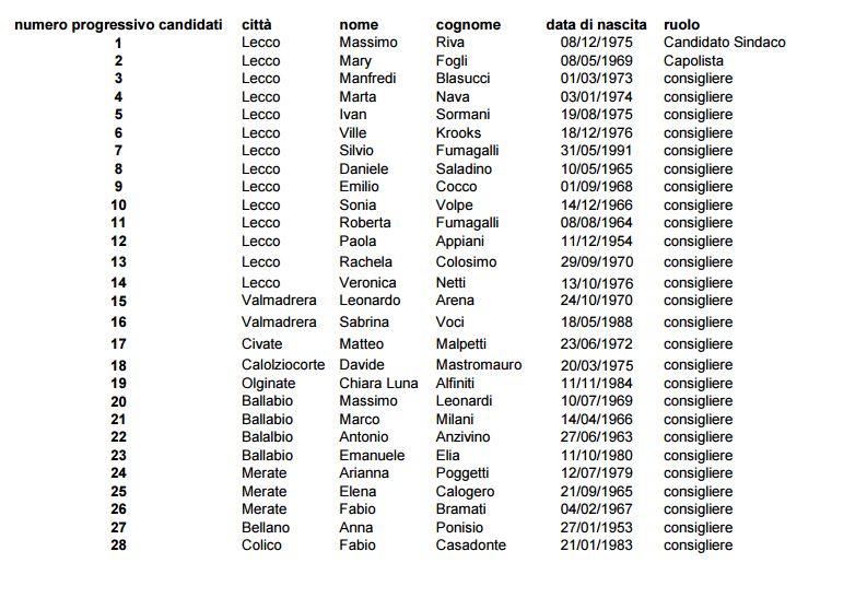 UN’ALTRA LECCO È POSSIBILE – Lista dei candidati