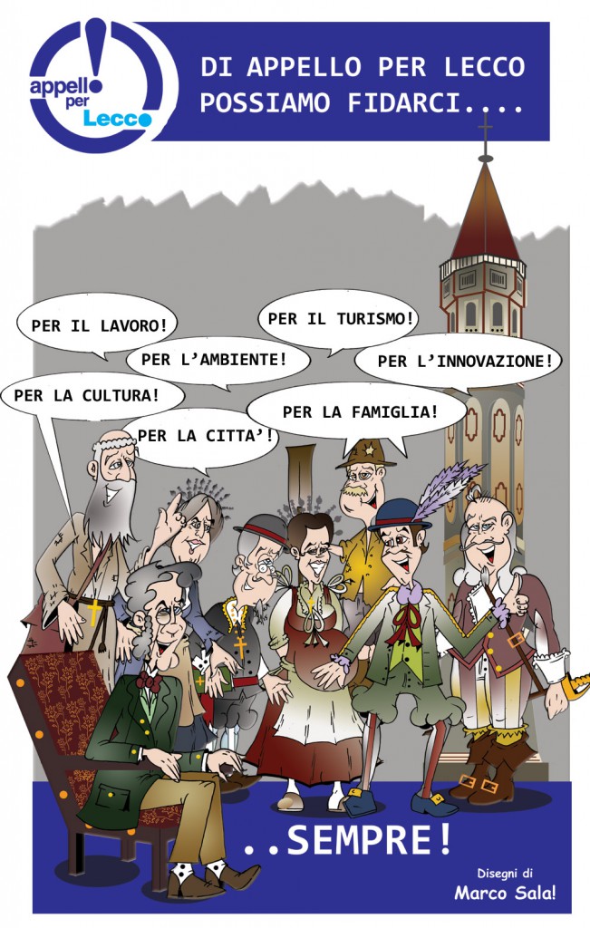 Presentato anche il primo manifesto elettorale dell’associazione, a cura di Marco Sala, che fa parlare Alessandro Manzoni e i suoi personaggi positivi : un messaggio inequivocabile della vocazione di rappresentare la comunità lecchese da parte dell’associazione.