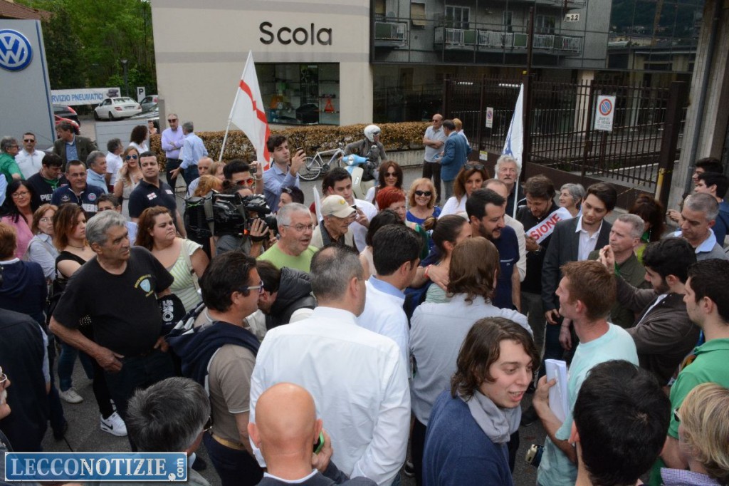 Ad attendere il segretario del Carroccio c’era tutto lo stato maggiore della Lega lecchese: il segretario provinciale Nogara e cittadino Emanuele Mauri, i consiglieri comunali, il senatore Paolo Arrigoni, il consigliere regionale Antonello Fumagalli e i sindaci Roberto Ferrari di Oggiono, Elena Zambetti di Ello e Dante De Capitani di Pescate, oltre ad una trentina di militanti.