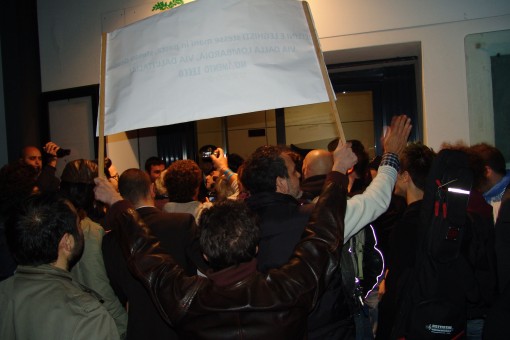 Momenti di tensione si sono verificati nei minuti successivi all’arrivo di Formigoni, quando gli agenti hanno impedito ai contestatori di avventarsi nell’auditorio, in attimi di parapiglia generale tra forze dell’ordine e manifestanti sfociati in qualche spintone. A calmare le acque ci ha tentato Antonio Pasquini , vice coordinatore provinciale del Pdl, che ha cercato il dialogo con quanti affollavano l’ingresso.