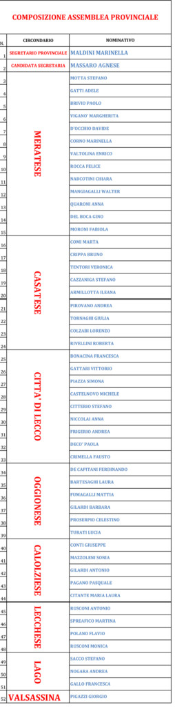 Nominati anche i membri dell’assemblea provinciale del partito. Seguono i nomi: