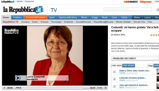 “Questa mattina – racconta l’onorevole Codurelli nell’intervista- all’ordine del giorno non c’erano i probemi veri del Paese, ma hanno imposto come argomento le intercettazioni. Poi hanno bloccato l’aula perchè hanno problemi al loro interno. In quel frangente è successo che il Presidente del Consiglio (Silvio Berlusconi, ndr) che non ci onora mai della sua presenza, è arrivato, ha riunito i suoi e si è messo a raccontare probabilmente le solite barzellete. A questo punto ho gridato tutta la mia indignazione, dicendo loro che erano degli irresponsabili. Poi mi sono rivolta alla Lega apostrofando anche loro e dicendo che erano altrettanto responsabili. A quel punto ho visto agitarsi delle mani e ho sentito che qualcuno mi ha gridato qualcosa, ma trovandomi in alto non ho sentito. Poi mi hanno riferito la frase: ‘Vai a farti scopare’. Questo è il pensiero che hanno i leghisti nei confronti di quelle donne che non sono asservite ai capi…”.