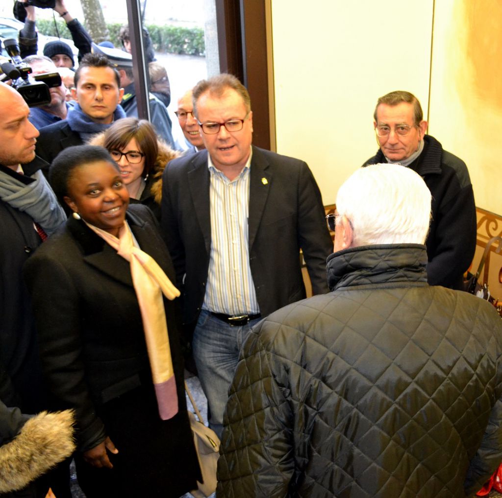 Ad accogliere a Casa don Guanella il ministro per l’Integrazione sono stati il sindaco della città, Virginio Brivio, e don Agostino Frasson, direttore della comunità educativa di via Amendola. “Per noi tutti questa è una giornata memorabile”, ha esordito don Agostino, che ha subito lasciato parole e immagini a un video che racchiudeva l’attività svolta dalla stessa comunità e alcuni tra i momenti più significativi che hanno fin qui caratterizzato l’operato della Kyenge dopo la sua nomina a ministro.