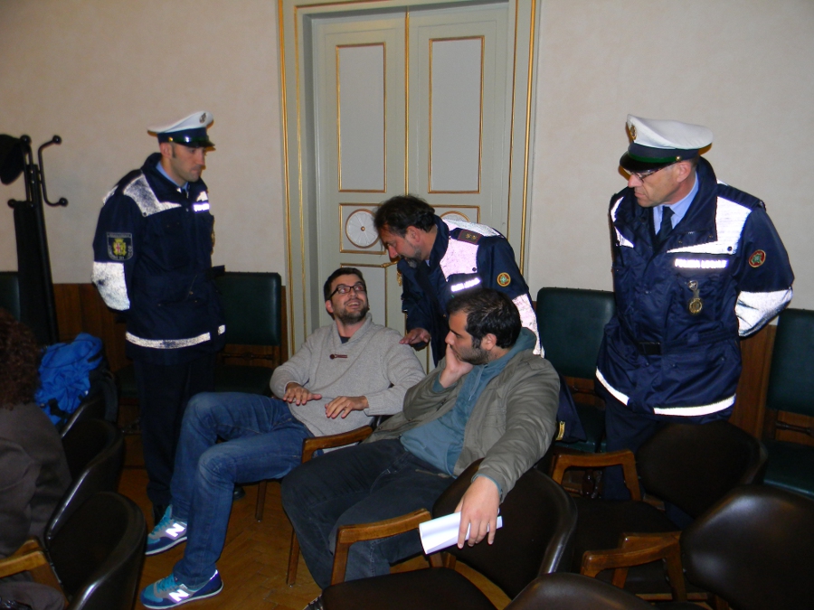 Passano i minuti, quindi un agente riprende l’ ‘opera di convincimento’ e a un certo punto i due rappresentati del sodalizio di via Plava decidono di desistere e lasciano l’aula. Il Consiglio riprende.