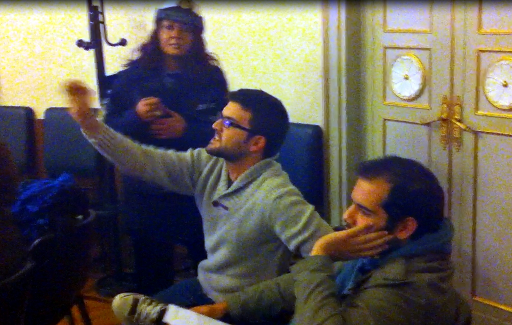 Duccio e l’amico sobbalzano sulle sedie e sbottano: “Ma come, noi siamo stati zitti e buoni. Veniamo attaccati gratuitamente e senza motivo da un ‘pagliaccio’ e tocca a noi lasciare l’aula. Da qui non ci muoviamo!”.