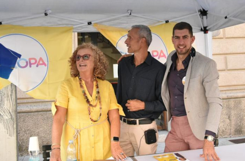 Al gazebo i candidati Olivia Ratti, Luca Monti e Stefano Morcelli