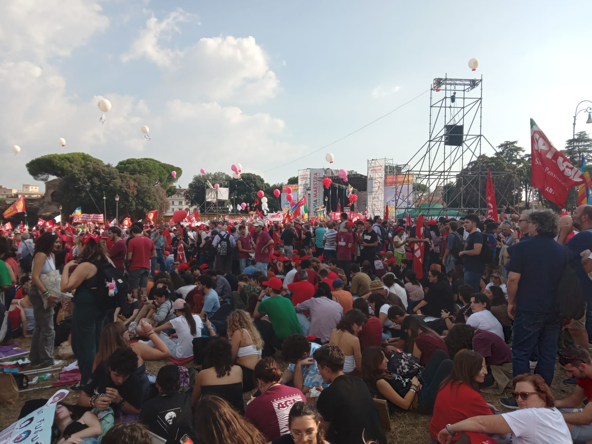 La manifestazione ha visto un doppio corteo, un partito da piazza della Repubblica e il secondo da Piazzale dei Partigiani entrambi confluit a piazza San Giovanni. Tra i presenti ovviamente Maurizio Landini, segretario generale della Cgil, Elly Schlein segretaria del Pd, una rappresentanza del Movimento 5 Stelle (assente Giuseppe Conte impegnato a Foggia), Angelo Bonelli co-portavoce di Europa Verde, Nicola Fratoianni leader di Sinistra italiana, Emiliano Manfredonia presidente delle Acli e ancora i rappresentanti di molte associazioni ambientaliste tra le quali Europe for peace, Gianfranco Pagliarulo dell’Anpi, Rosy Bindi, don Ciotti e il sindaco di Roma, Roberto Gualteri.