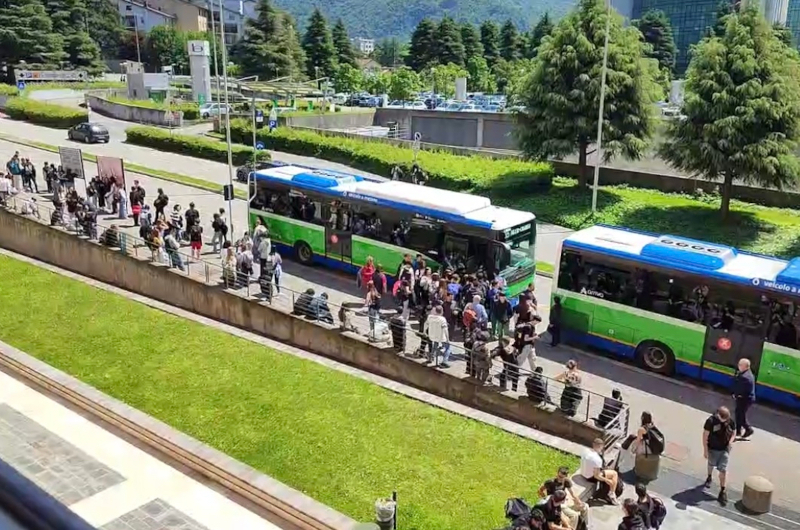 In queste giornate di primi caldi gli studenti non sanno trovare un riparo all’ombra, lo stesso dicasi per le giornate di pioggia in quanto non è per niente attrezzata per svolgere questo servizio. Si tratta di un sito provvisorio, senza alcuna pensilina, senza posti per sedersi, tutti accalcati sul marciapiede.