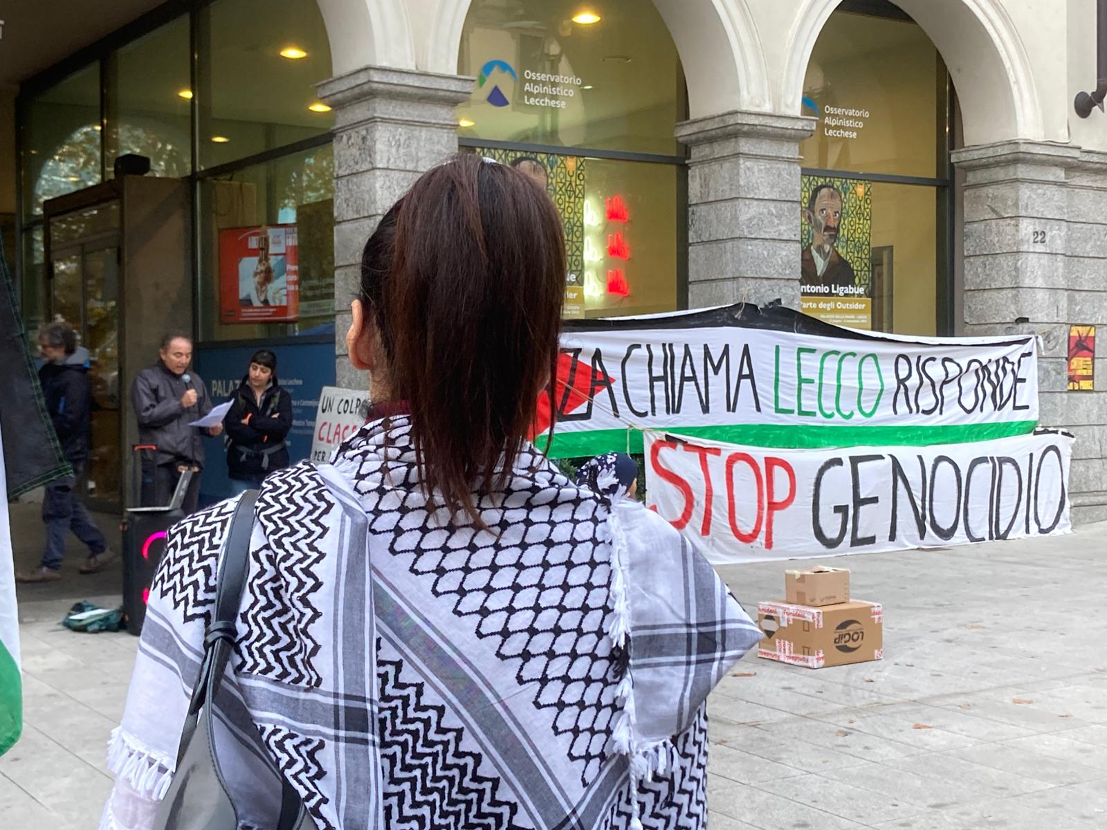LECCO – Tra slogan e bandiere, il cuore di Lecco ha ospitato un nuovo momento di mobilitazione a sostegno della causa palestinese. Un presidio che ha visto la partecipazione di alcune attivisti ma anche liberi cittadini, riunitisi per esprimere vicinanza alla popolazione di Gaza e chiedere uno stop ai bombardamenti.