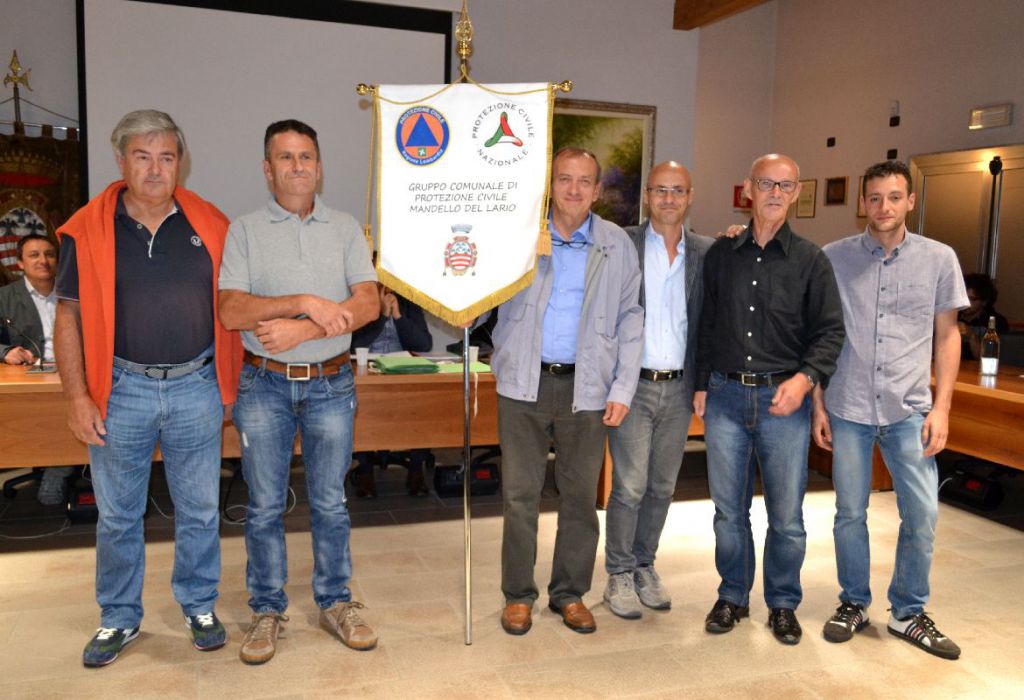 In apertura di seduta era stato consegnato al presidente del gruppo comunale di Protezione civile il nuovo labaro dell’associazione, in attività dal 1999. A riceverlo, dalle mani dell’assessore Luciano Benigni, sono stati l’attuale coordinatore Alberto Piva e Adelio Compagnoni, primo responsabile del Gruppo.