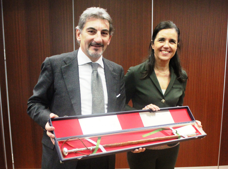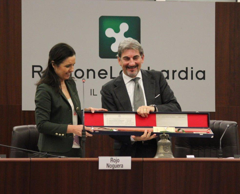 MILANO – E’ avvenuto ieri mattina, prima del’inizio dei lavori del Consiglio regionale, il passaggio formale di consegne della Presidenza della Calre dalla Galizia (Spagna) alla Lombardia, che per la prima volta sarà chiamata a guidare la Conferenza dei Presidenti delle Assemblee legislative regionali d’Europa. A passare il testimone a Cattaneo nell’Aula del Consiglio regionale è stata il Presidente del Parlamento della Galizia Pilar Rojo Noguera, che ha consegnato a Cattaneo la “maquila”, simbolo basco che rappresenta il “bastone del potere” con cui il pastore guida le sue greggi e che è anche il degno distintivo della presidenza della Calre.