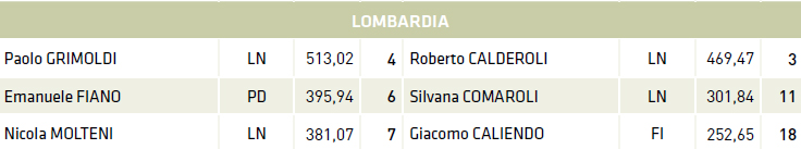 Leghista è anche il deputato con l’indice di produttività più alto, Matteo Bragantini (indice 637,35), tra i senatori spicca invece Loredana De Petris (726,25) del Gruppo Misto. Anche la classifica lombarda è guidata dal Carroccio con in testa a Montecitorio l’on. Paolo Grimoldi (513,02) seguito dall’esponente del PD Emanuele Fiano (395,94); tra i senatori lombardi la spunta il leghista Roberto Calderoli (469,7) affiancato dalla collega di partito Silvana Comaroli (301,84).