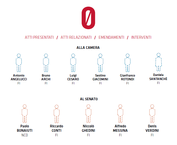 Questo, spiega l’associazione, per “distinguere la gran massa di attività che non produce effetti da quella, poca, che invece da risultati. Non si entra mai nel merito di quanto un atto disponga, se sia buono o cattivo, ma ci si limita ad attribuire un punteggio ad ogni passaggio di iter. Dunque più un provvedimento si approssima al suo completamento (come un ddl che diventa legge) più sarà alto il punteggio assegnato a chi presenta l’atto – primo firmatario – o ne è il relatore. Altri punti vengono attribuiti con il consenso ottenuto su un provvedimento, attraverso le firme degli altri parlamentari, e, infine, grazie ad una più assidua partecipazione del parlamentare ai lavori”.