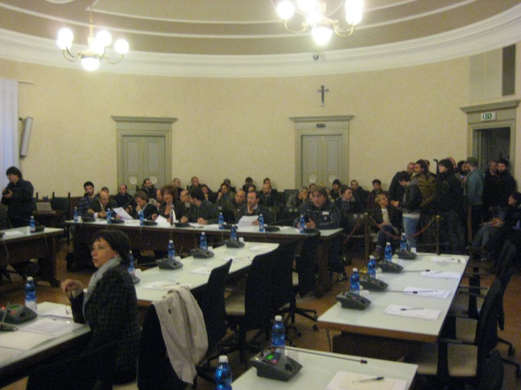 Presenti in aula oltre ai consiglieri, le solite “tifoserie” pro e contro la targa. Il dibattito inzia con Venturini (Idv) che attacca il Pdl, gruppo che insieme al Movimento d’Azione per la Rinascita è assente dall’aula per protesta: “Rifiutare un confronto pubblico è un affronto al dibattito nel comune di Lecco e al consiglio comunale”. Intervengono anche Cinzia Bettega