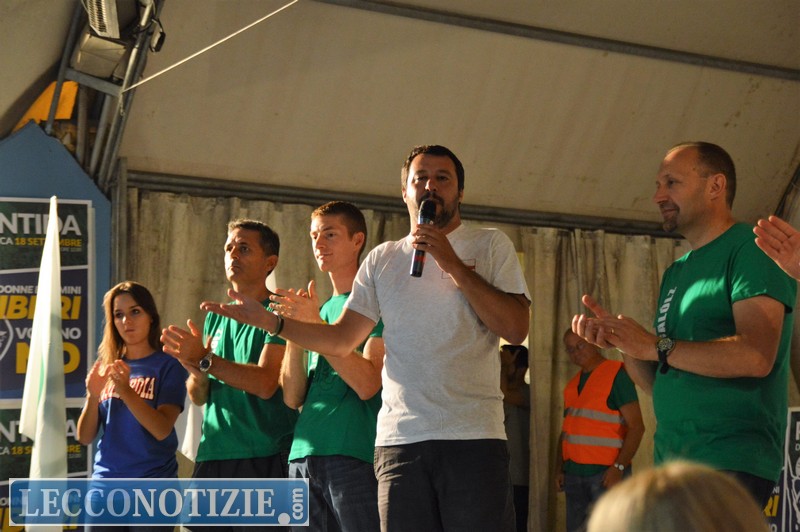 CALOLZIOCORTE – “Bisogna cambiare per i nostri figli, per evitare che un giorno ci dicano, ma mentre accadeva tutto questo tu papà dove eri?” è un Matteo Salvini che guarda al futuro delle nuove generazioni quello che, venerdì sera, è salito sul palco del “Dancing Lavello”, in occasione della sesta festa padana della Valle San Martino, riempiendo il tendone dello storico locale calolziese e facendo incetta di consensi tra i militanti presenti all’evento.