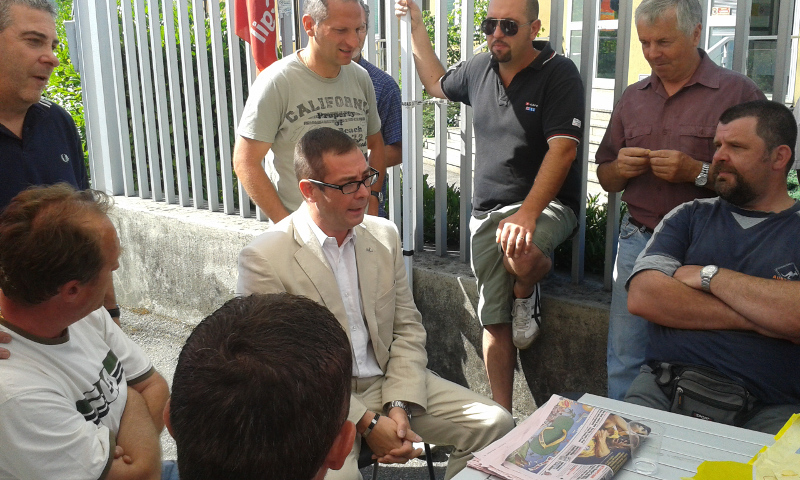 CALOLZIOCORTE – Nella mattinata di oggi il Presidente f.f. Vice Presidente vicario della Provincia di Lecco Stefano Simonetti ha incontrato i lavoratori delle ex Trafilerie Brambilla (ora Trafileria del Lario S.p.a. in Liquidazione) presso il presidio allestito davanti ai cancelli dello stabilimento di Calolziocorte, per ascoltare la loro voce rispetto alla dura vertenza in corso, che nelle ultime settimane è stata incentrata sulle complesse trattative per la cessione dell’attività industriale, in crisi da tempo, a un gruppo industriale turco.