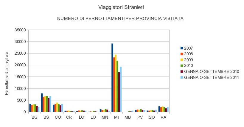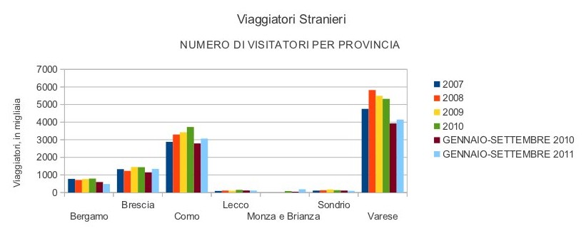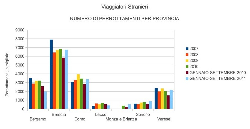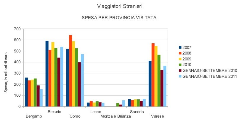 I dati sul turismo pubblicati stamani dalla Banca d’Italia, relativi al periodo gennaio-settembre 2011, mostrano un netto calo delle presenze straniere nella provincia di Lecco sia per spesa (da 37 a 33 milioni di euro, -11%), sia per numero di visitatori (da 119mila a 112mila, -5%), sia giorni di pernottamento (da 555mila a 415mila, -25%) rispetto allo stesso periodo del 2010. Un dato in contrasto sia con l’andamento dell’aggregato regionale, dove la spesa dei turisti stranieri è passata da 3.696 a 4.008 milioni di euro, sia alle provincie limitrofe.